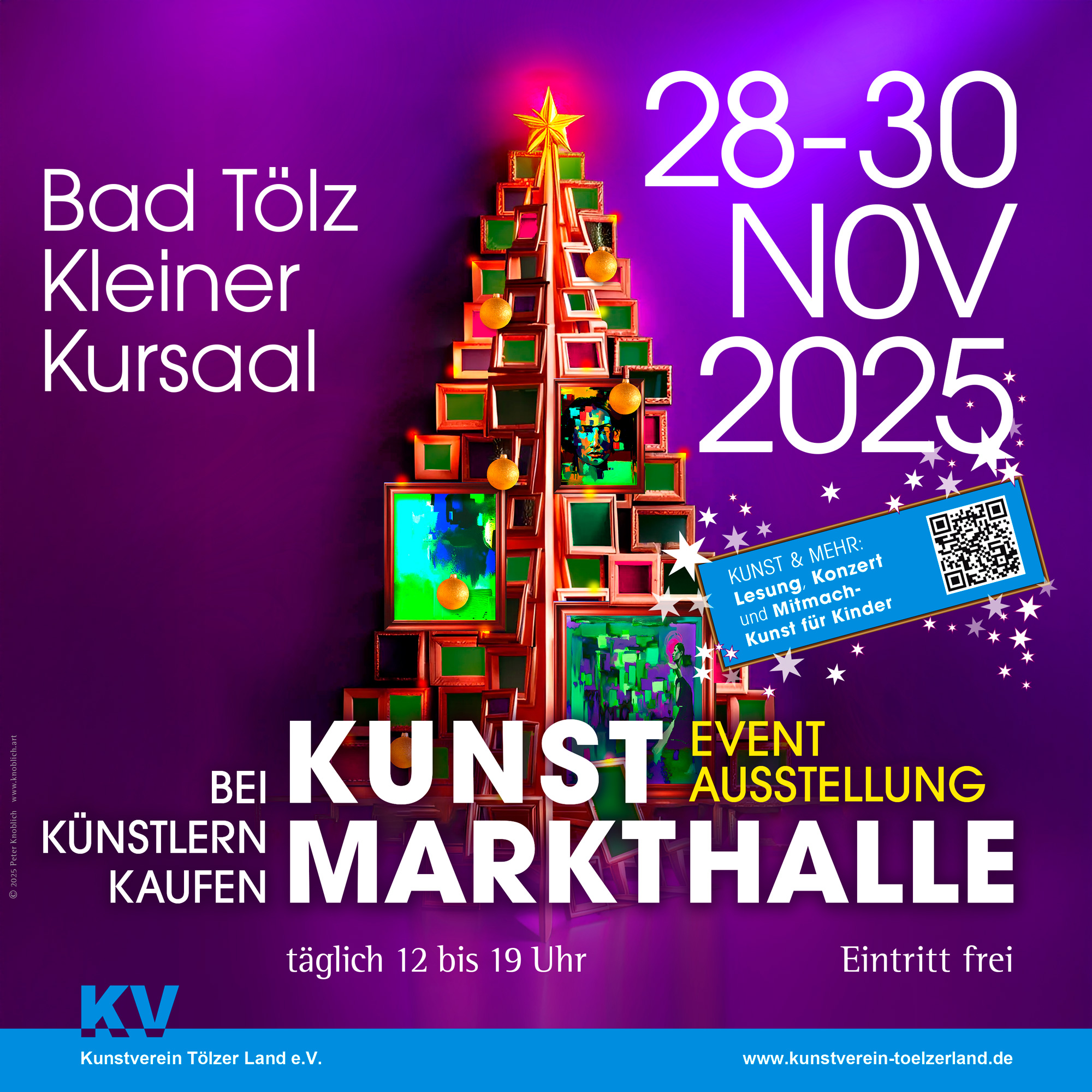 Den Abschluss des Jahres bildet im November die Kunst-Markthalle, die parallel zum Tölzer Christkindlmarkt stattfindet. In vorweihnachtlicher Atmosphäre präsentieren Künstlerinnen und Künstler ihre Werke im Innenraum und bieten Kunst zum Anschauen, Begegnen und Mitnehmen.