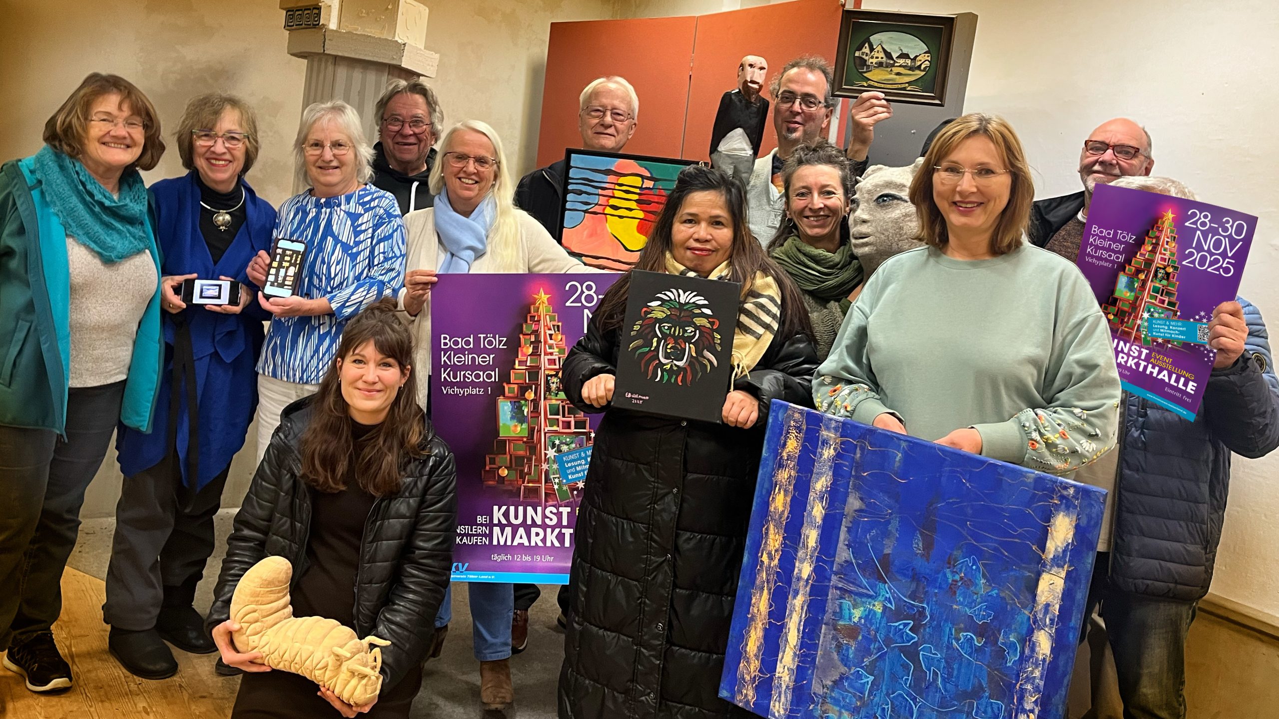 Auch in diesem Jahr öffnete die Kunst-Markthalle parallel zum Tölzer Christkindlmarkt ihre Türen und lud zu einem stimmungsvollen Kunst-Erlebnis ein. Der Saal am Vichyplatz verwandelte sich in eine lebendige Markthalle der Künste, in der regionale Künstlerinnen und Künstler Malerei, Grafik, Skulptur und Fotografie präsentierten und ihre Werke zum Kauf anboten.