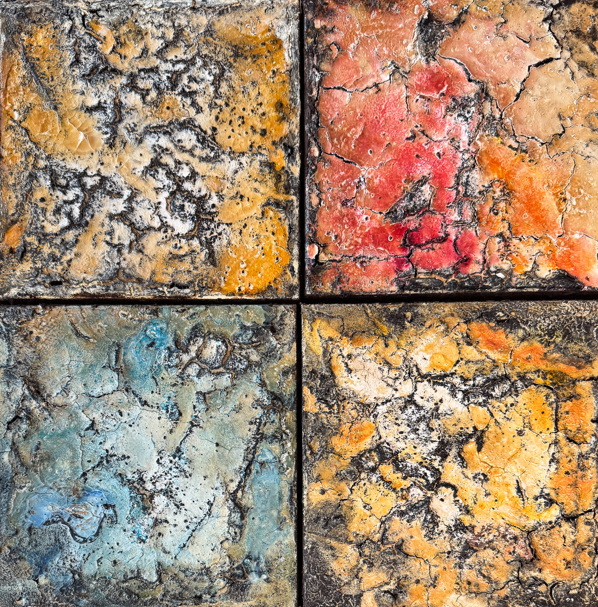 Zwischen Materie und Farbe: Inge Klenk lässt Pigmente und Naturmaterialien sprechen und lotet metamorphe Prozesse auf Leinwand und Holz aus. Mit Sumpfkalk, Gesteinsmehlen, Leimen und Naturmaterialien entwickelt sie eine eigenständige, farbstarke Bildsprache, die mit Verwerfungen und Bruchlinien, mit Verdichtung und Transparenz spielt.